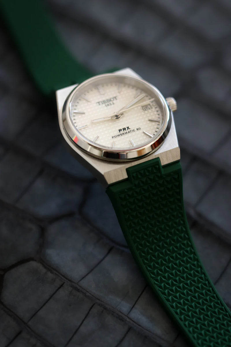 High Quality Cut-to-Size Strap for Tissot PRX Dark Green – With Luxury Butterfly Clasp